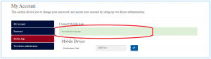 After clicking the Mobile App icon, this page will appear where you will need to enter the generated code from your mobile device (encircled in RED). Once the code entered, just click the checkbox to the right of the input box. Please see the sample screenshot below.
