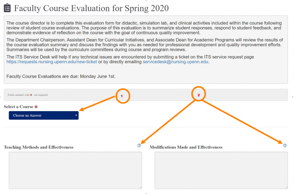 1. Start by selecting the course you are evaluating from the drop down menu titled “Select a Course”